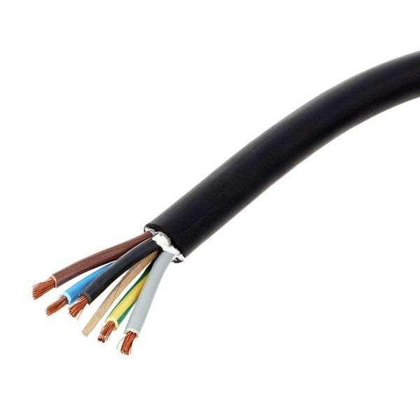 El cable de goma H07RN-F es un tipo de cable de alimentación de caucho flexible diseñado para su uso en entornos exigentes y condiciones climáticas extremas. Este cable tiene una sección transversal de 5 x 6,0 mm² y es de color negro.
