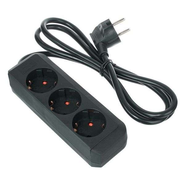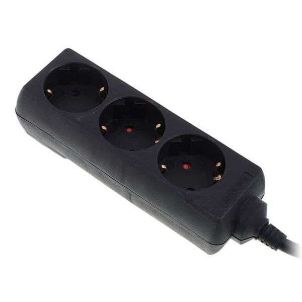 Este dispositivo es de 3 vías y tiene un color negro. Viene con un cable de 1,5 metros y tomas de seguridad dispuestas en ángulo de 45 grados, lo que permite enchufes en ángulo. Sus dimensiones son 21 x 8 x 6 cm (largo x ancho x alto) y pesa 0,33 kg.